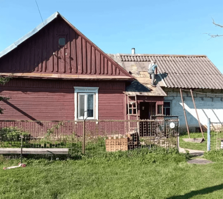 Работаем по 240 Указу. Процесс демонтажа кровли здания в городе Ляховичи (Брестская область). Эта работа является частью более крупного проекта по реконструкции здания который включает в себя залитие фундаментов, монтаж межкомнатных перегородок, а также монтаж металлочерепицы, софита и водосточной системы.