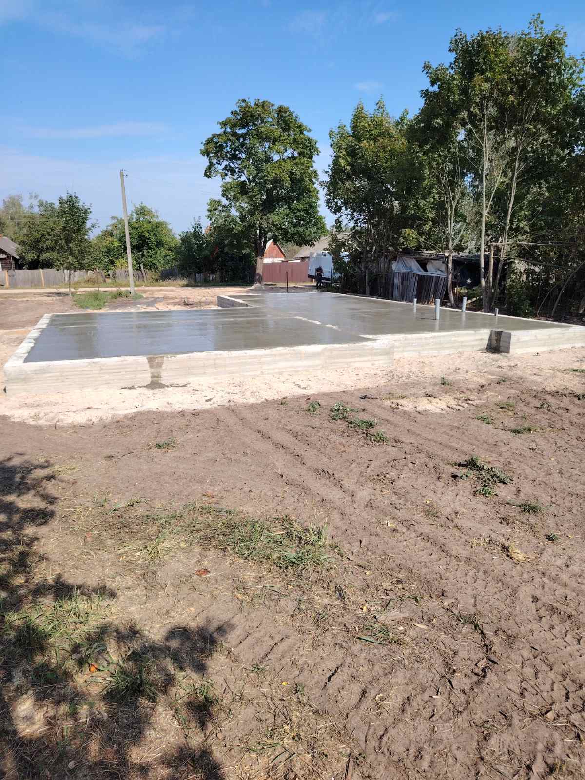 —Свайно-ленточный фундамент дома и хоз. помещения, установка черновой плиты в Светлогорском районе