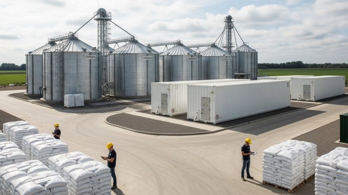 Не менее важным элементом инженерной инфраструктуры является хранение удобрений. Надежные системы хранения позволяют: